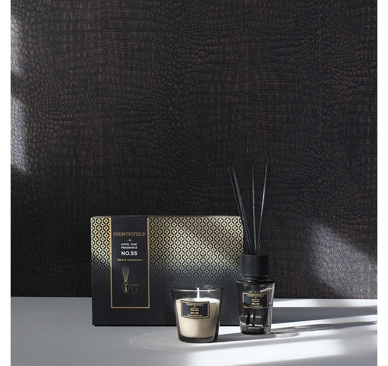 Breng warmte en elegantie in huis met de giftset Sandalwood geurstokjes en geurkaars uit de Countryfield Hotel Chic serie. Deze luxe set combineert een verfijnde geurbeleving met een stijlvolle glazen houder die prachtig staat in de woonkamer, slaapkamer of badkamer.