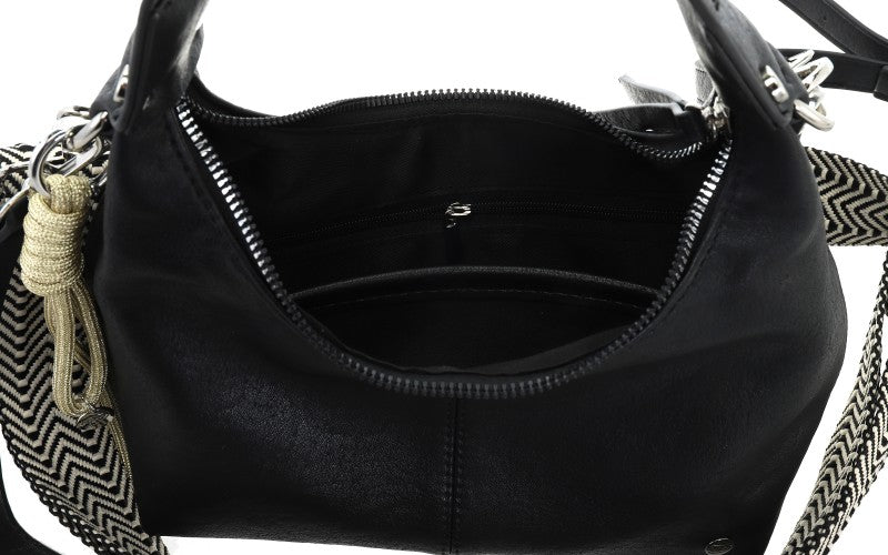 Ondanks dat de tas soepel en compact oogt, past er verrassend veel in het hoofdvak. Binnenin vind je een klein open vakje en een ritsvakje, zodat je je sleutels en telefoon niet hoeft te zoeken tussen je andere spullen. De tas sluit veilig met een rits, zodat je met een gerust hart op pad kunt.