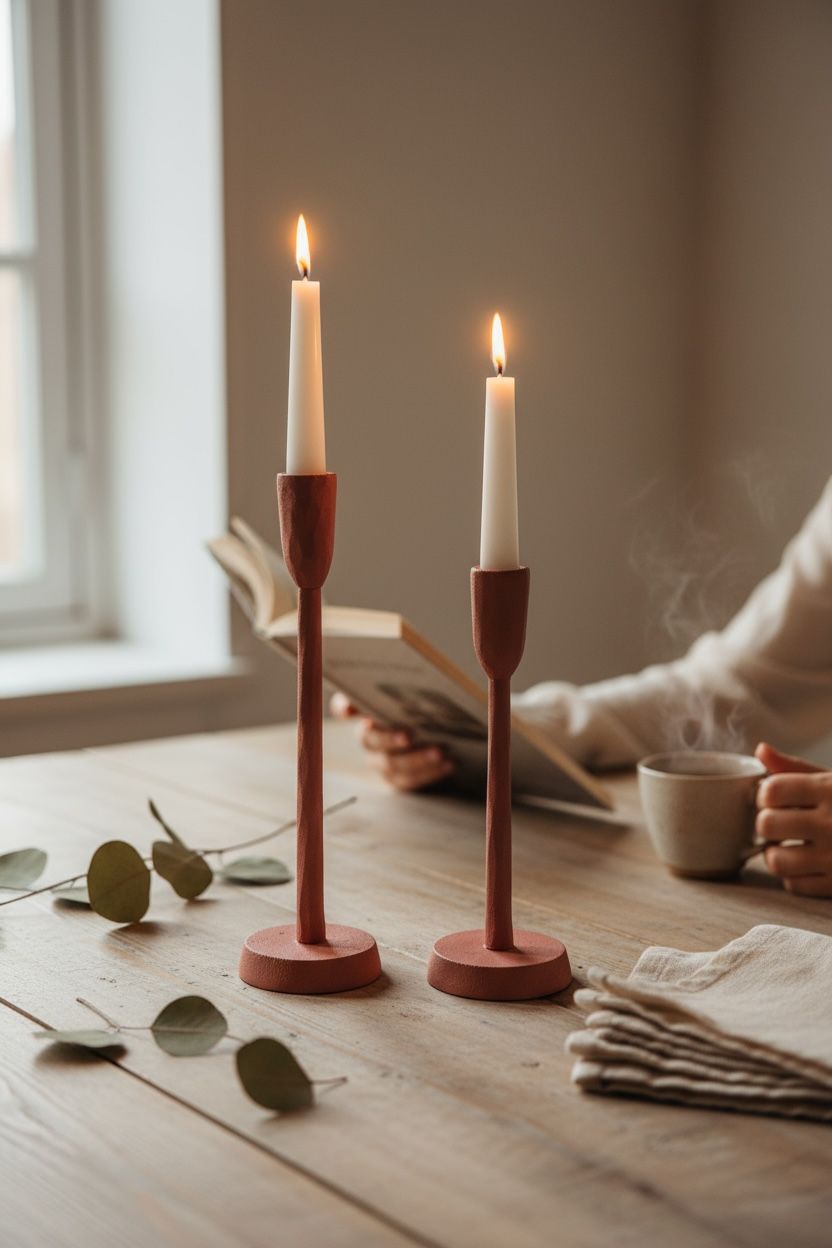 Breng warmte en sfeer in huis met kandelaar Terra. Deze terracotta kleurige kandelaar heeft een elegant, slank design van 25,5 cm hoog en een robuuste voet van 9 cm breed. De matte afwerking en natuurlijke kleurnuance zorgen voor een rustige en aardse uitstraling. Perfect voor een bohemian, Scandinavisch of minimalistisch interieur.