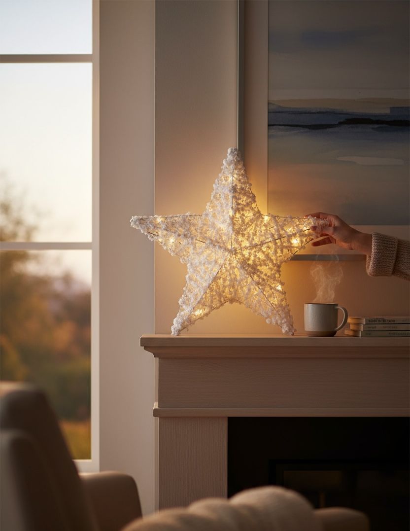 Breng warmte en sfeer in jouw kerstcollectie met de kerstster Maisie 50 cm van Countryfield. Deze prachtige LED kerstster is een echte eyecatcher en straalt dankzij haar elegante design en warme verlichting een feestelijke charme uit. Perfect om je huis, winkel of showroom in een magisch winters jasje te steken.