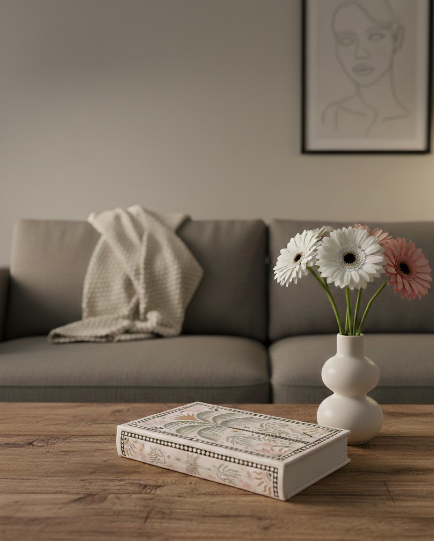 Dit opbergboek Palm is een stijlvolle manier om spullen netjes uit het zicht te bewaren. Het lijkt op een decoratief koffietafelboek, maar binnenin zit een handige opbergruimte voor alles wat je liever niet los hebt liggen.