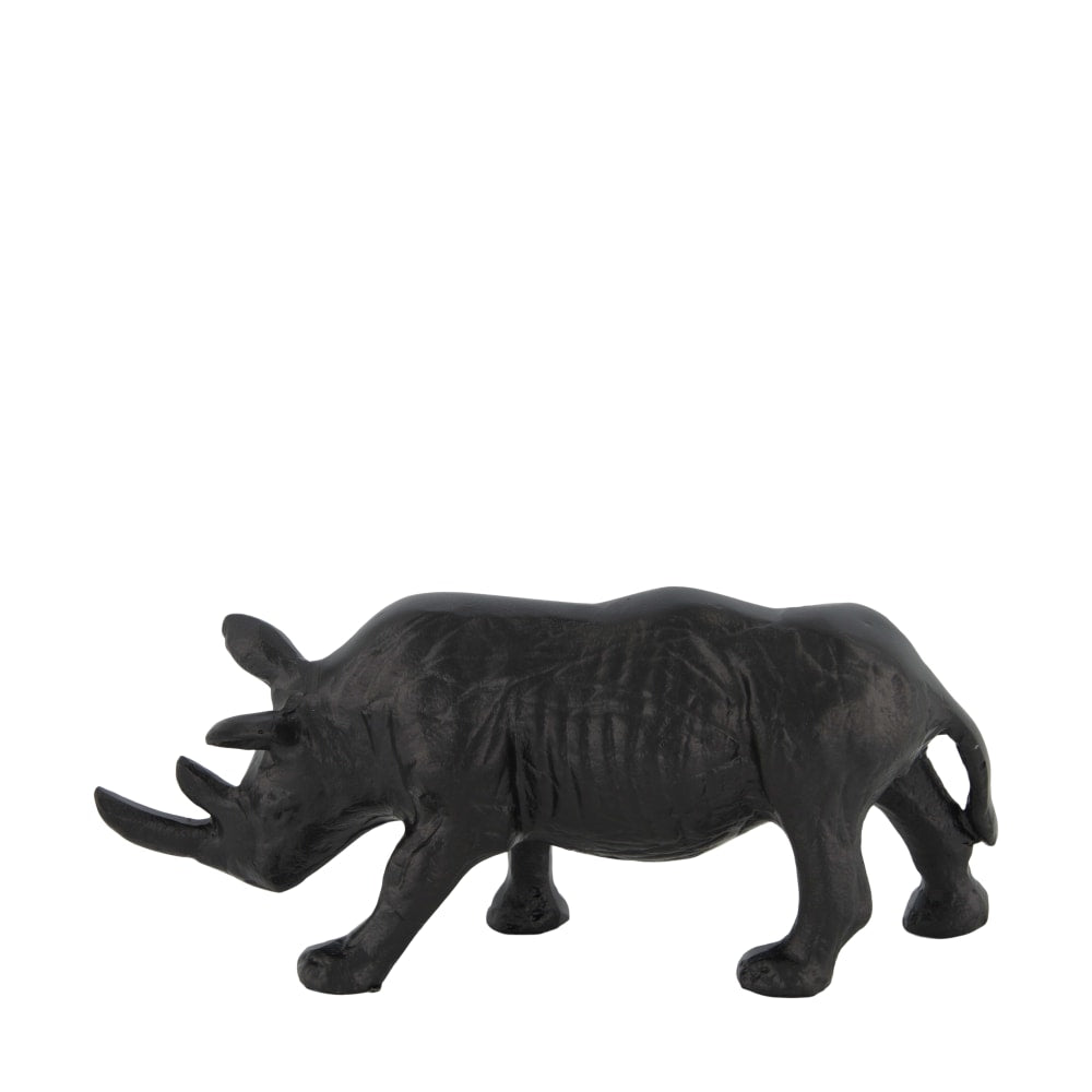 Met een afmeting van 23x8x10 cm is dit ornament compact maar karaktervol. De gedetailleerde afwerking benadrukt de robuuste uitstraling van de neushoorn en maakt dit stuk tot een echte eyecatcher op een wandplank, dressoir of salontafel.