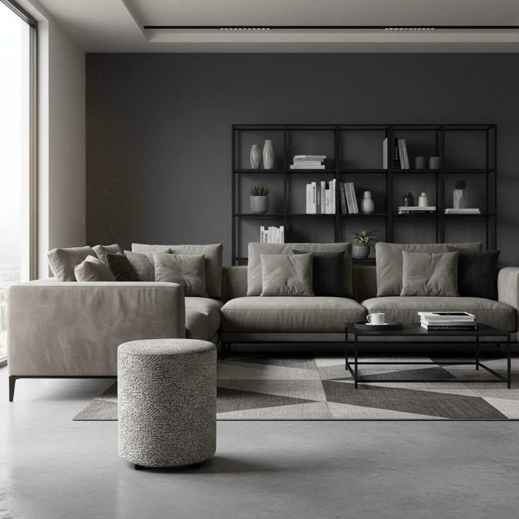 Poef Juno in grijs reliëf is een moderne blikvanger met een subtiele artistieke twist. De fluweelzachte stof met een uniek reliëfpatroon geeft deze poef een luxe uitstraling die direct opvalt, zonder te overheersen. De koele grijstint zorgt voor rust en balans, perfect voor een stijlvol interieur met karakter.