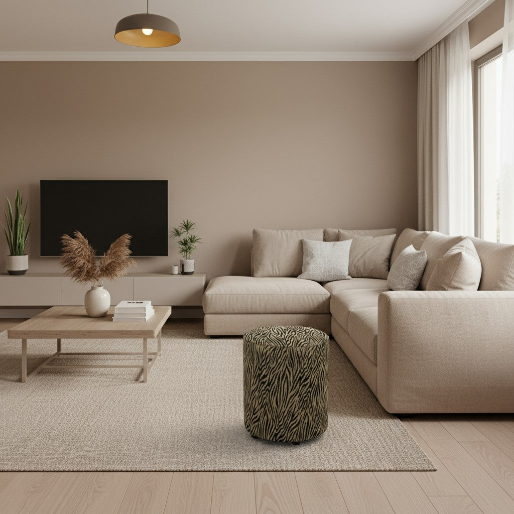 Poef Ziva brengt een vleugje speelsheid en lef in je interieur. De opvallende zebra print in warme zand en zwarttinten geeft deze poef een stijlvolle, exotische uitstraling die direct sfeer toevoegt aan elke ruimte. Perfect voor wie durft te combineren en houdt van een interieur met karakter.