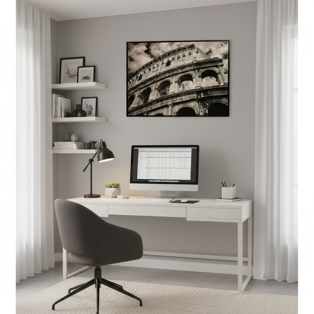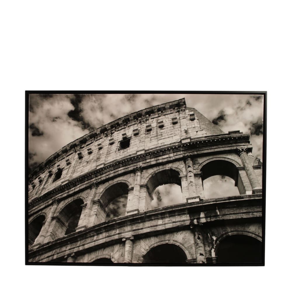 Canvas Colosseo brengt een stukje Rome in huis. Het bekende silhouet van het Colosseum straalt kracht en geschiedenis uit, maar door de zwart-wit uitstraling blijft het rustig en stijlvol. De afmeting van 58 x 2.5 x 78 cm maakt dit schilderij prachtig voor boven de bank, in de hal of juist in een knusse hoek waar je graag zit.