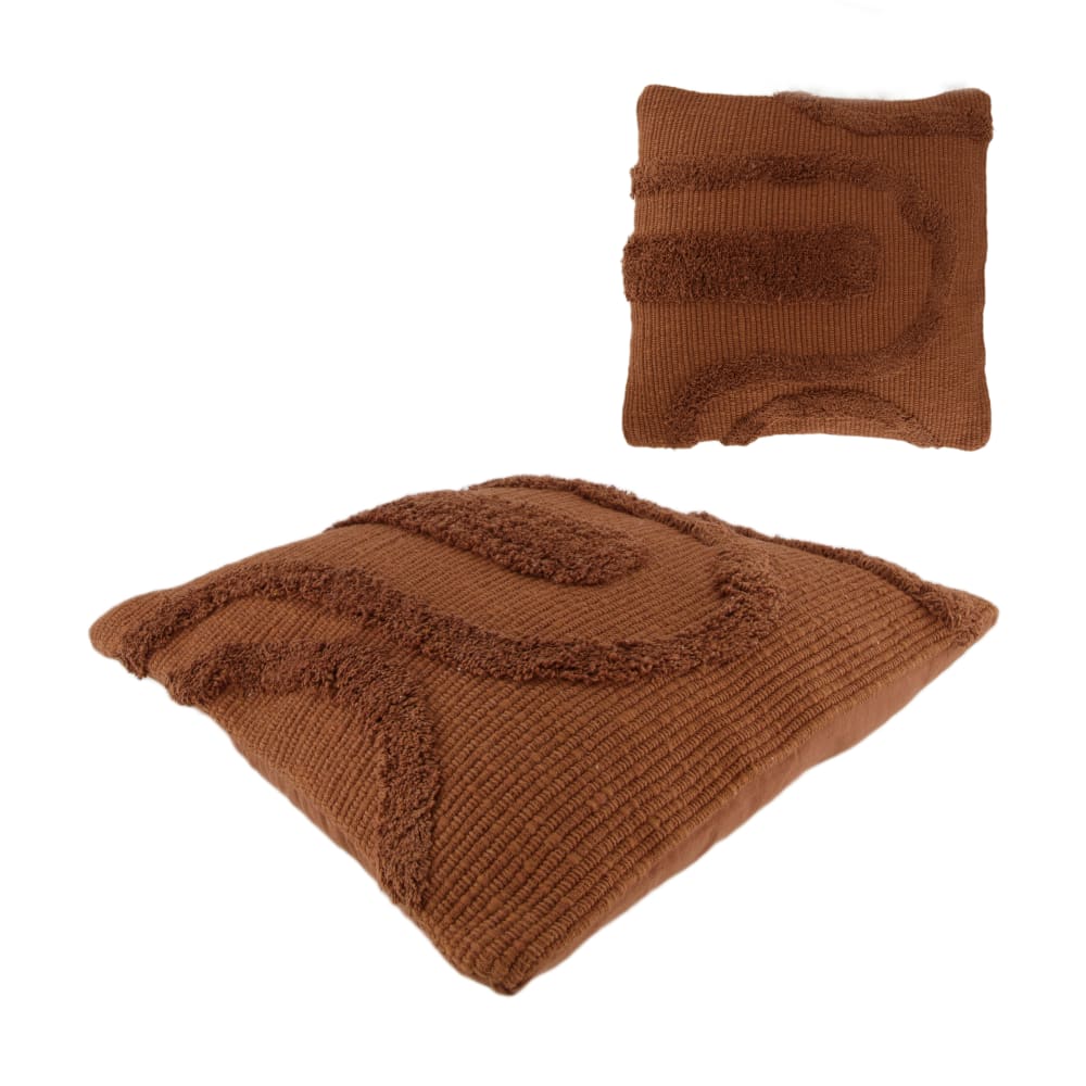 Het Sierkussen Terra brengt warmte en textuur in jouw interieur. Dit vierkante kussen van 45x45 cm is uitgevoerd in een diepe bruine tint en heeft een speels 3D-patroon met reliëf, waardoor het een eigentijdse en stijlvolle uitstraling krijgt.