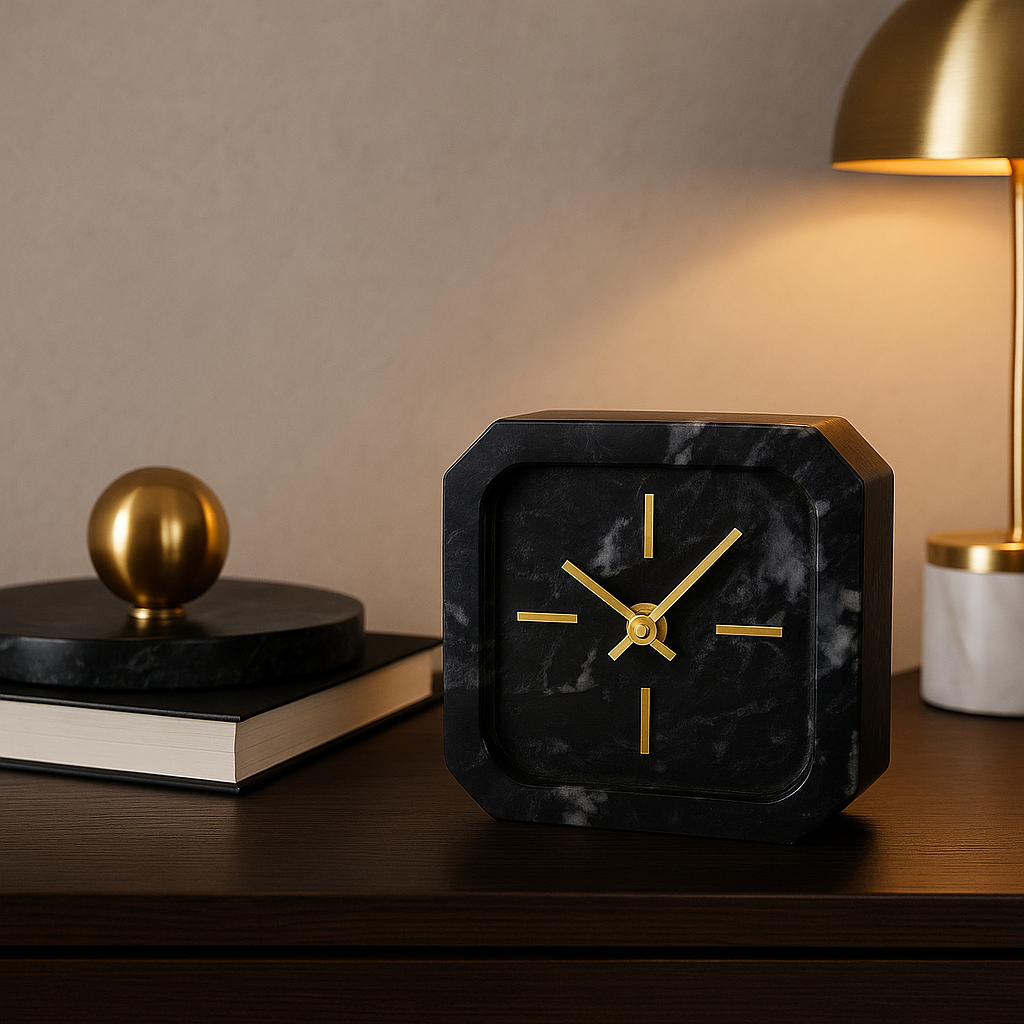 De Tafelklok Marmora Zwart combineert functionaliteit met elegantie en is een tijdloze toevoeging aan je interieur.