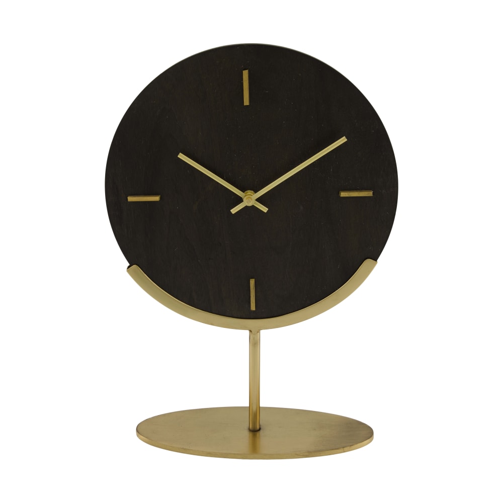De Tafelklok zwart goud is een stijlvolle blikvanger voor je interieur. Het ronde, zwarte uurwerk gecombineerd met de goudkleurige details en standaard straalt luxe en elegantie uit. Dankzij het minimalistische design met strakke lijnen past deze klok perfect in zowel een modern als klassiek interieur.
